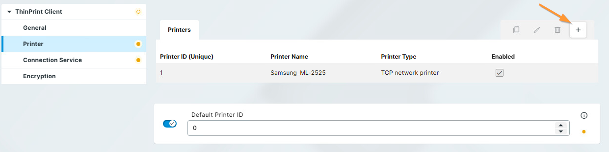 Im Printer-Menü können Sie neue Drucker hinzufügen oder bestehende bearbeiten. Um einen Drucker hinzuzufügen, klicken Sie auf die + Schaltfläche, wodurch sich das ThinPrint Manual Printer-Menü öffnet.