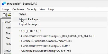 - Select the desired ThinPrint Client package in Scout Elias with Container→ Import Package (here the package for eLux 7).