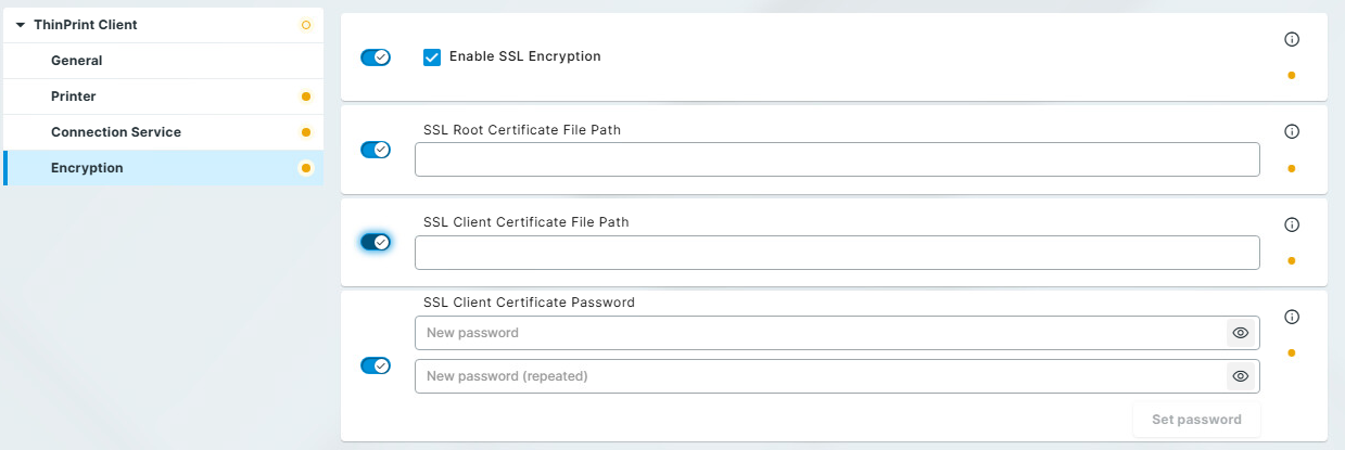 - To utilize encrypted printing enable the Enable SSL Encryption checkbox.